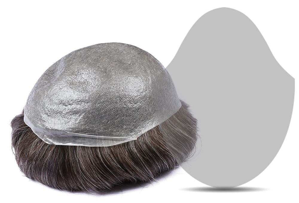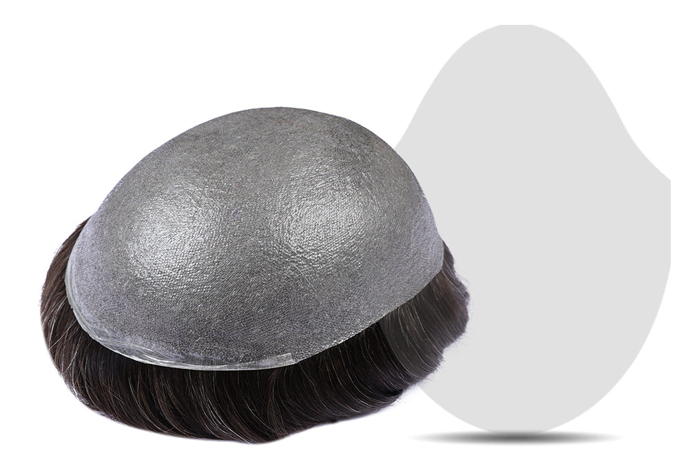 70% Extra Light Density Men Hair System V-loop 0.03mm skin base Sage|No-shine under Lights, Blends Well with Your Skin