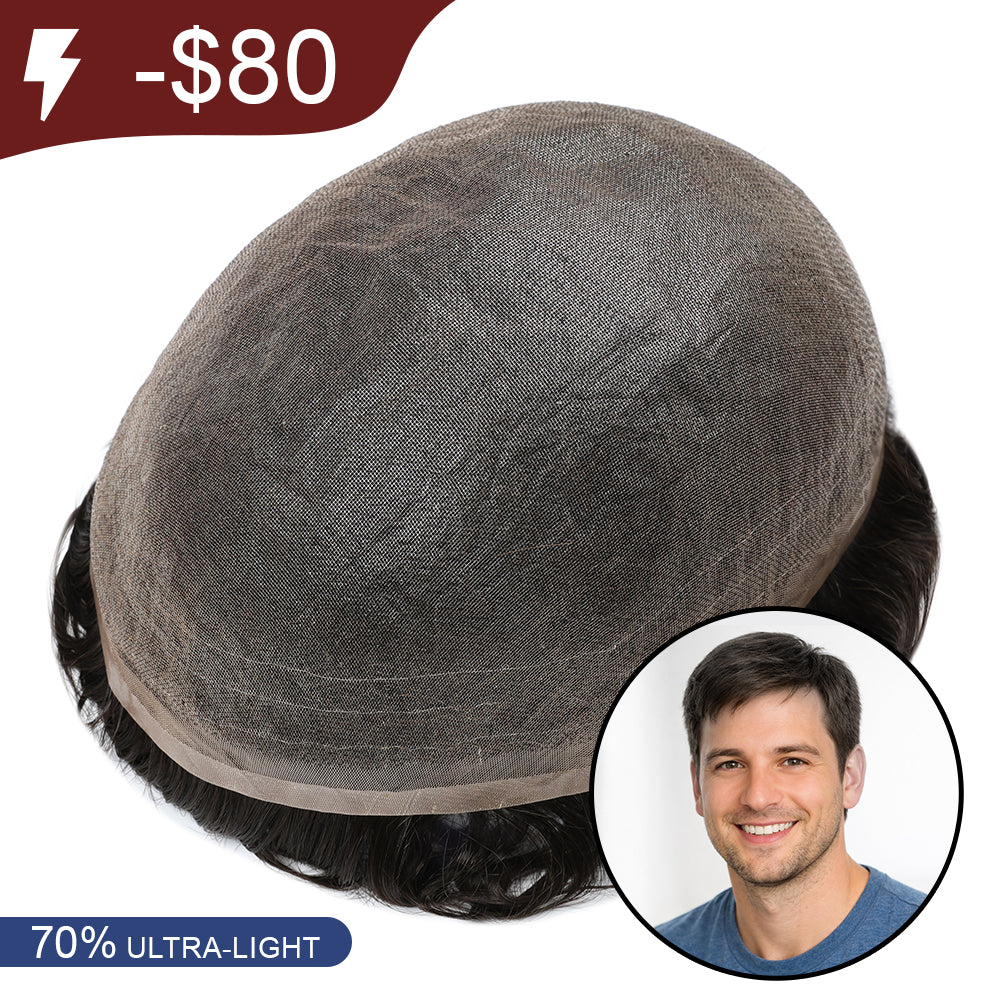 70% Extra Light Density Men Toupee Hawaii Full Swiss Mono hair system